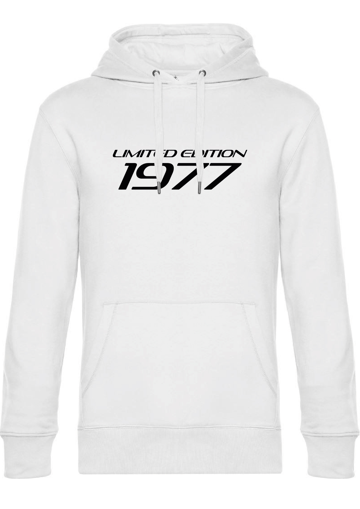 Egal ob du es zur Jeans trägst oder schick kombinierst – mit dem Limited Edition 1977 Herren Hoodie setzt du immer ein modisches Statement.